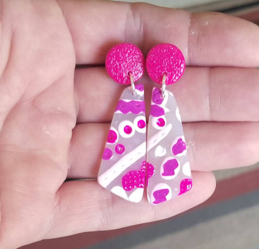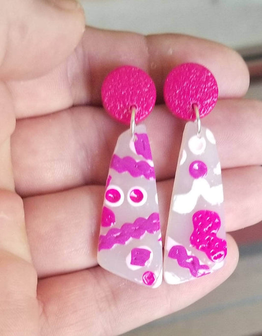 Abstract - Jillian Statement Earrings - Fushia Studs #2