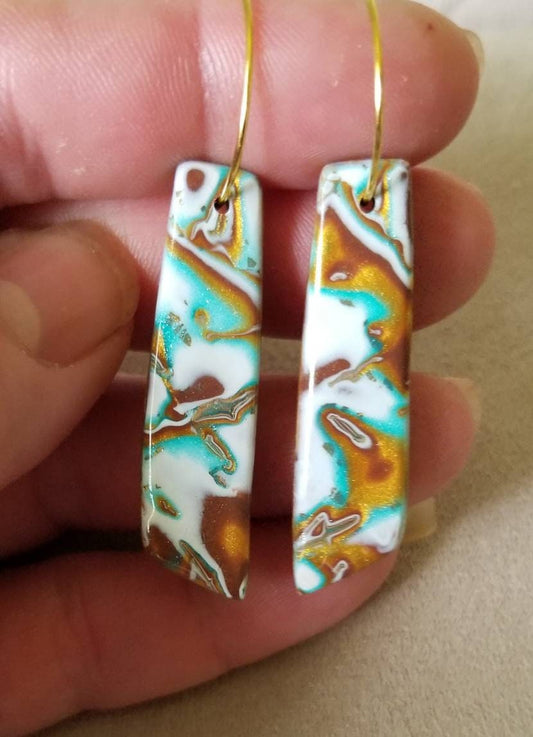 Mokume Gane - Mia Statement Earrings - Turquoise, Gold, Brown, and Pearl #5