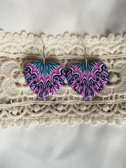 Hearts - Tara Statement Earrings - Pink, Purple, and Teal #3