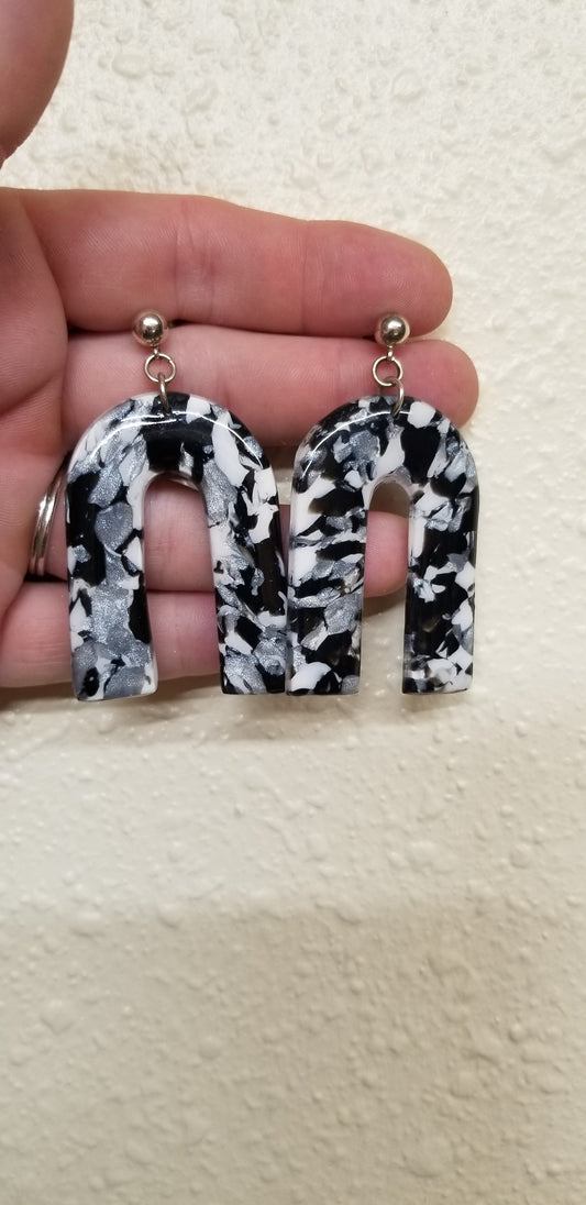 Marbled - Ava Statement Earrings - Black, Silver and White