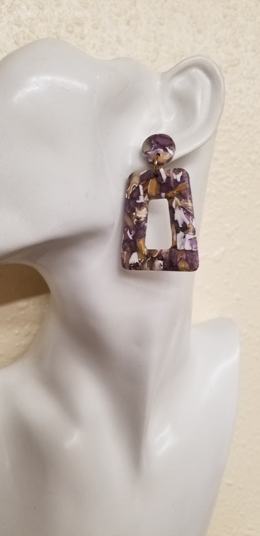 Marbled - Amelia Statement Earrings - Purple, Gold and White