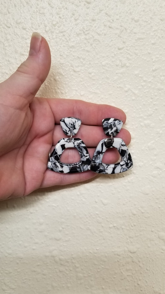Marbled - Lexy Statement Earrings - Black, Silver and White