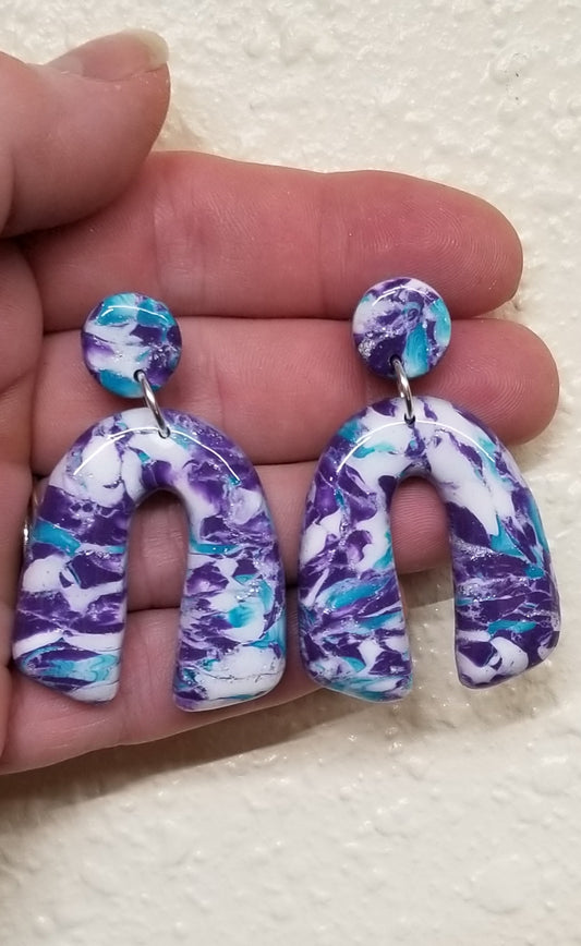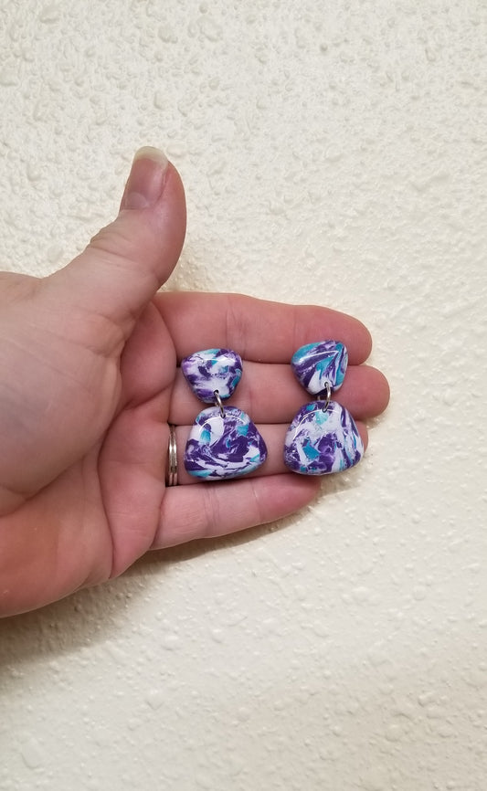 Marbled - Riley Statement Earrings - Purple, Teal and White