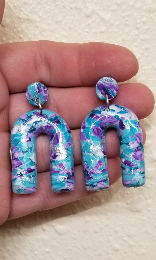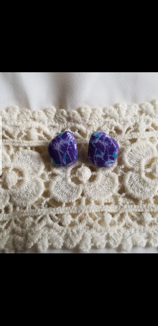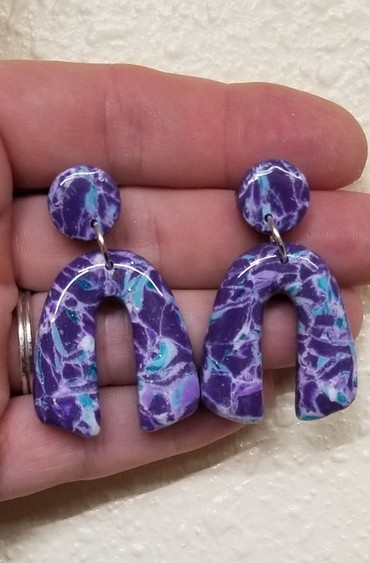 Marbled - Olivia Statement Earrings - Purple and Teal