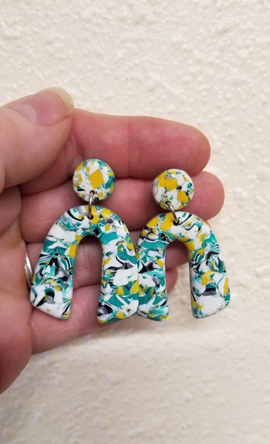 Marbled - Olivia Statement Earrings - Green, Yellow, Black and White