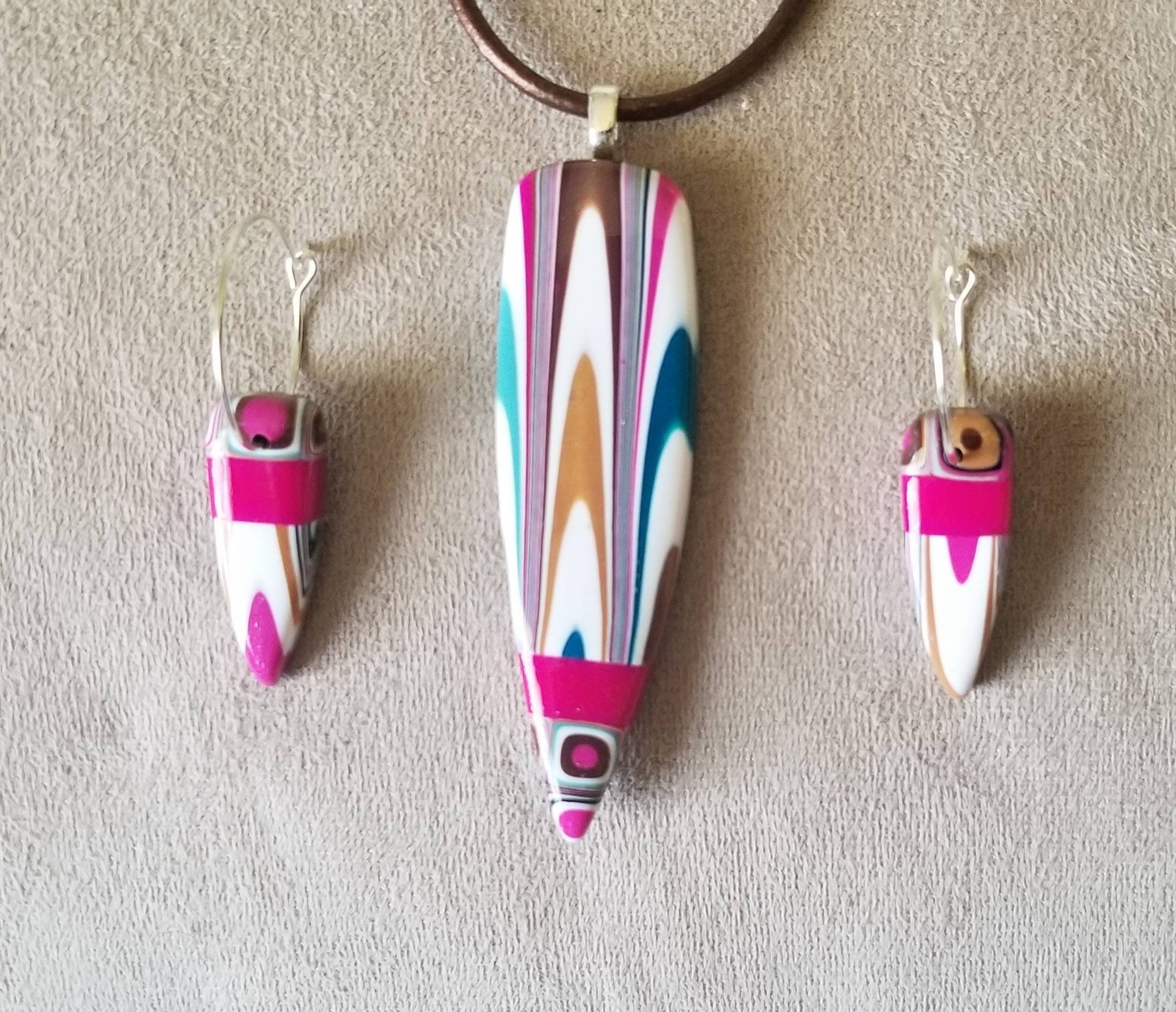 Klimt - Pendant and Earring Set - Fushia, White, and Gold Dagger