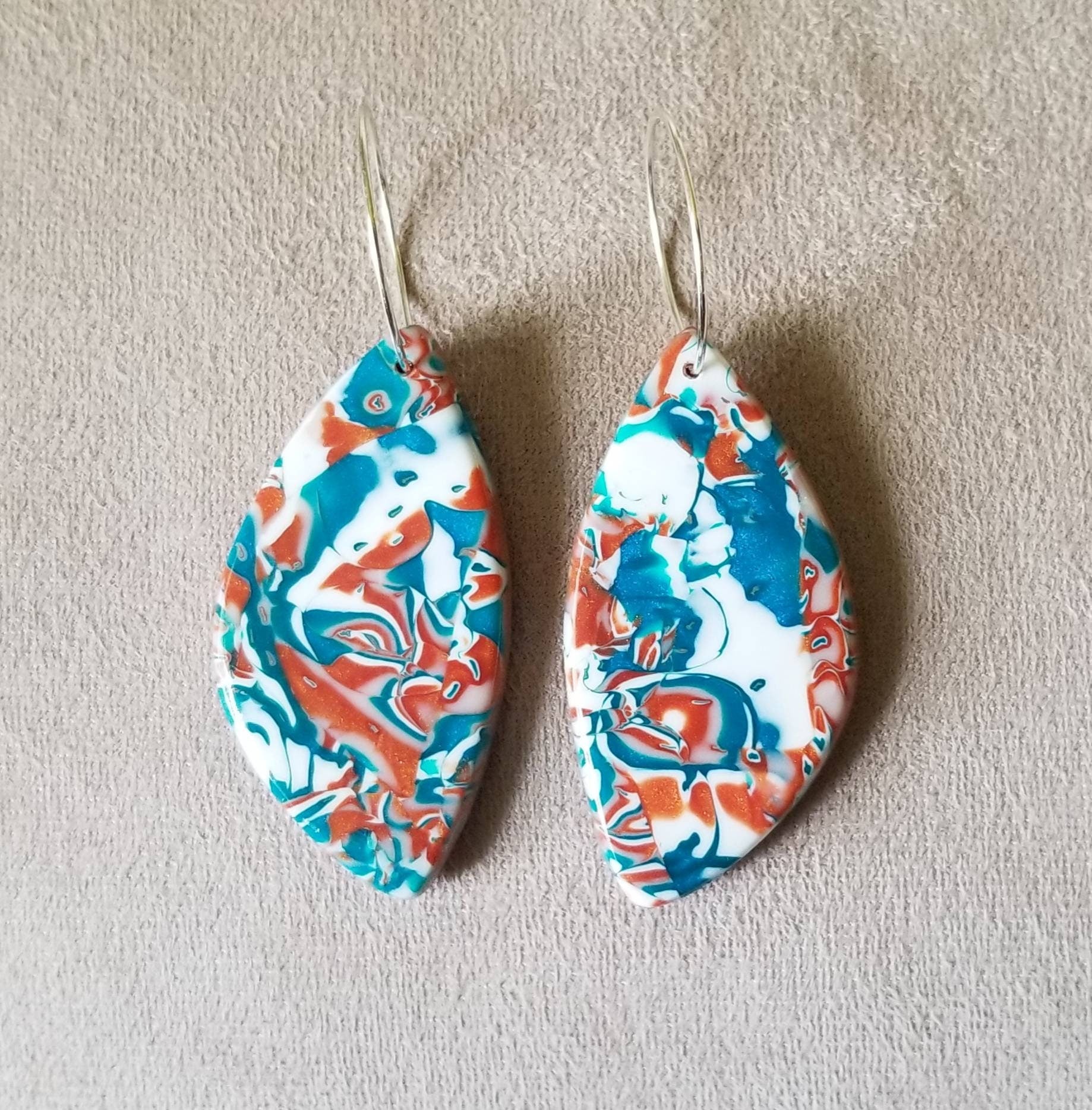 Mokume Gane - Shayna Statement Earrings - Copper, Teal, and White